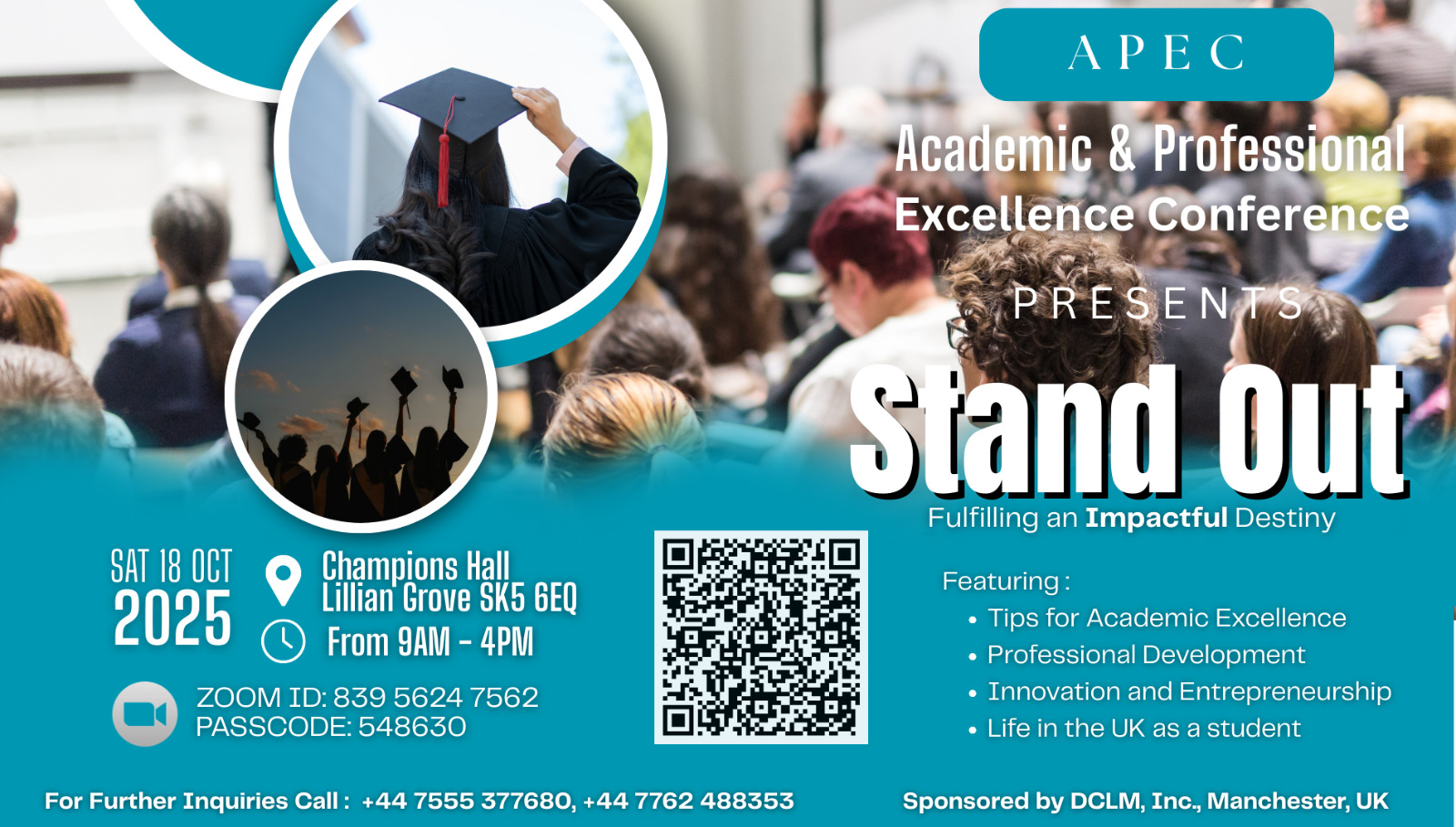 October 18 @ 9:00 am - 4:00 pm Academic & Professional Excellence Conference (APEC). Theme: Stand Out; Fulfilling an Impactful Destiny.